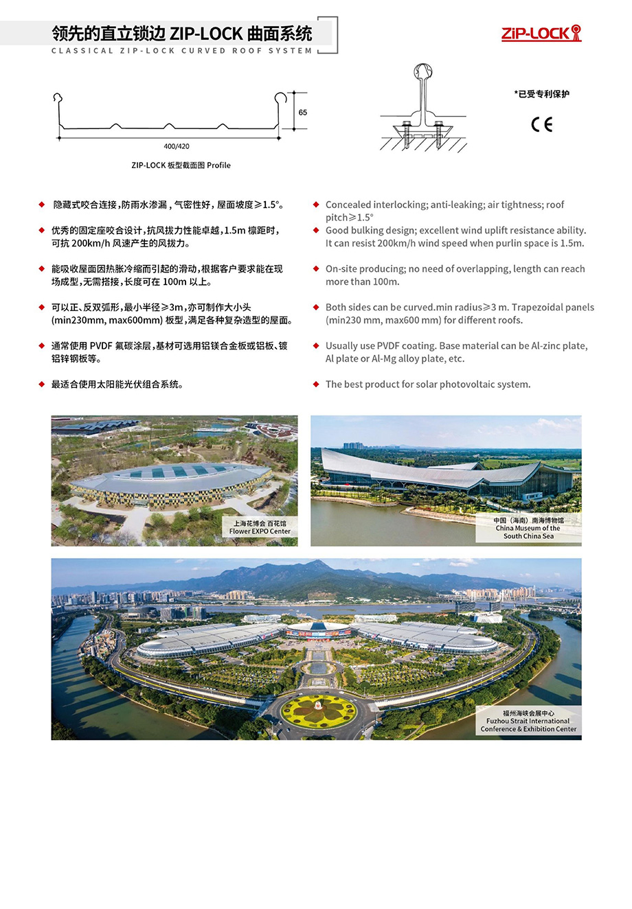 Classical ZIP-LOCK Curved Roof System
