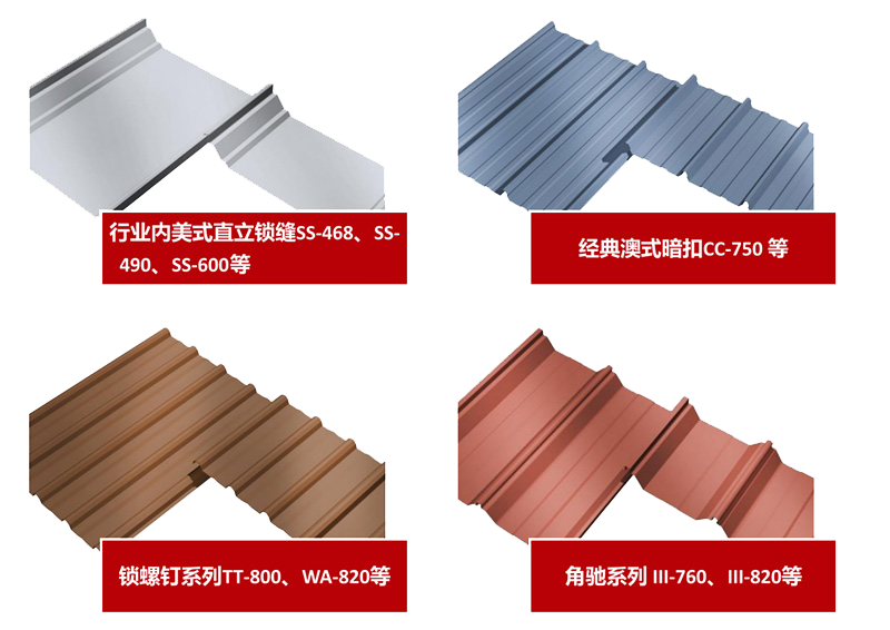 鋼之杰自助研發(fā)的專利夾具可適用于市場上95%的屋面系統(tǒng),如:美式直立鎖縫360°咬邊系列、鎖螺釘系列(T型)、角馳型等。