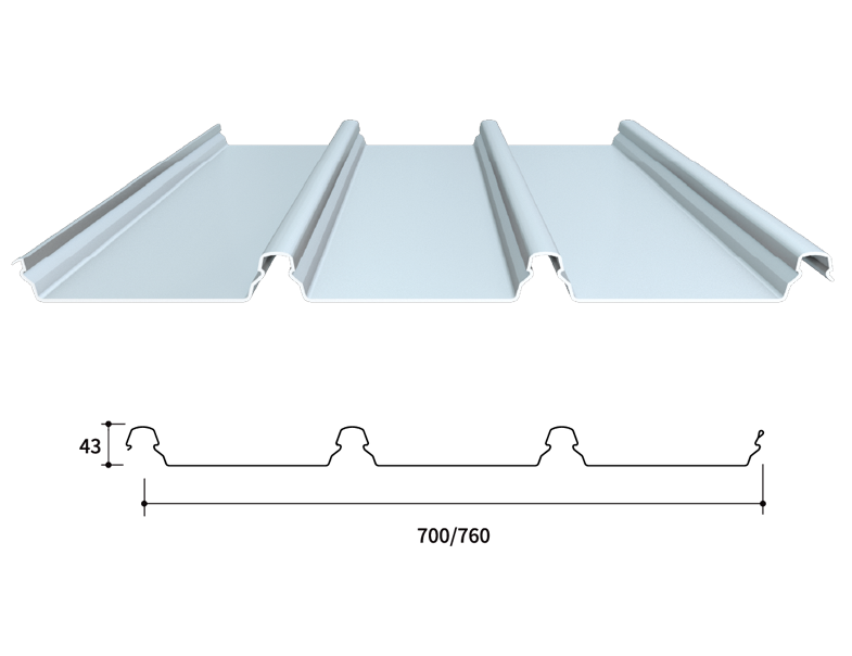 · 橫向肋槽增強板型的強度和剛性,適合更大跨度的屋面