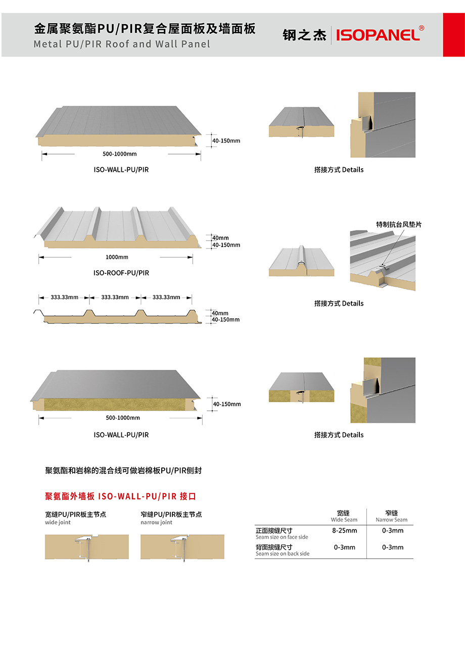 金屬聚氨酯PU/PIR復合屋面板、墻面板及波蘭板